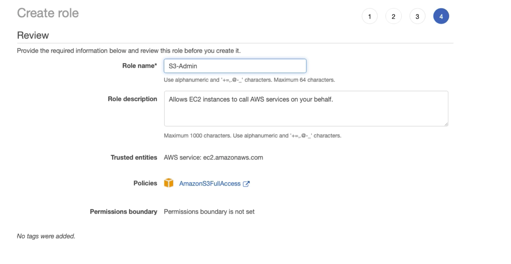 Now S3 can list the buckets with out storing any key / secrets in it.