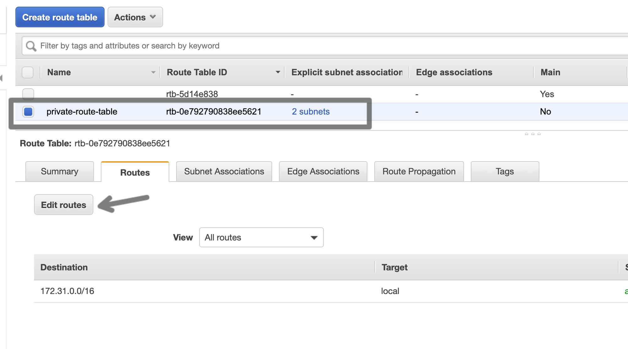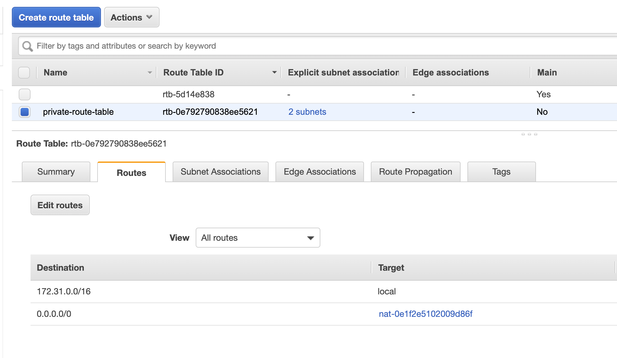 At this stage, we know that the route table of our private instance has only local entries. Let us see how we can set up NAT.