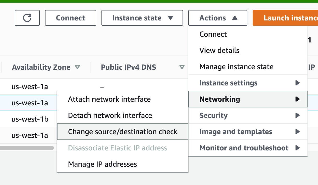 We need port forwarding for this to work , so go to the new instance you created (ensure in public subnet).