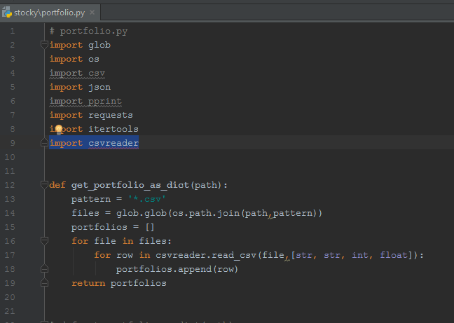 In our previous post we created two handy modules (csvreader.py and portfolio.py)